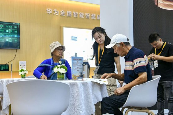 2024年10月27日,两名老人在2024深圳国际智慧养老产业博览会上了解智慧康养产品。近年来,一大批民营企业聚焦民生重点,以前沿技术和市场化手段提供破题方案,体现出民营经济促创新、惠民生的时代担当。