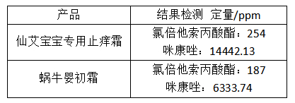 2026年1月,广西十安生物科技有限公司因生产的“仙艾宝宝专用止痒霜”和“蜗牛婴初霜”检出氯倍他索丙酸酯和咪康唑而受到处罚。澎湃新闻联合“老爸评测”送检第三方权威机构的检测报告如下::