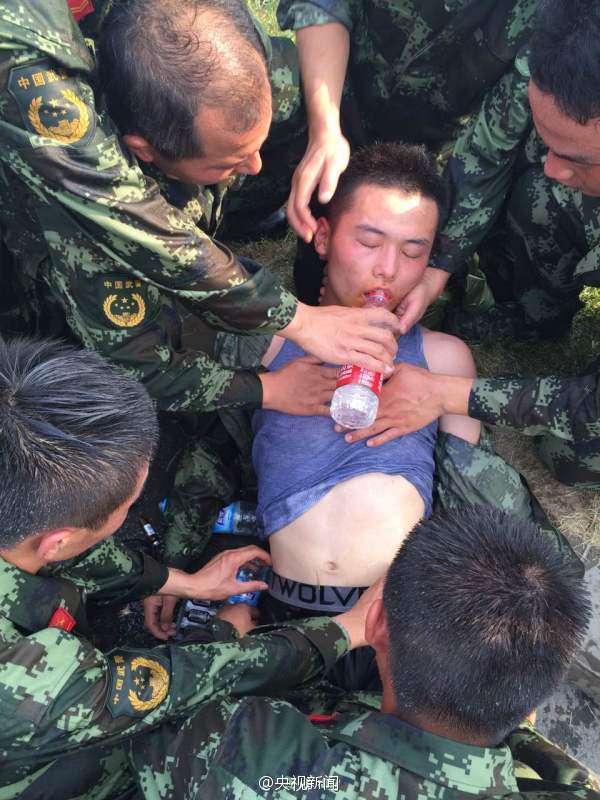 8月17日下午,武警8630部队防化连进入核心现场开展搜救和污染物检测工作。战士吕冬冬因连续作战,脱水昏迷,第二次倒在救援现场。穿上防化服,衣服里的温度会迅速超过60摄氏度,还要奔跑、搜救、操作仪器……点赞致敬!(央视记者张鹏军)