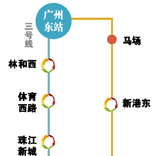功能定位及意义:串接广钢新城、海珠区南部居住区、五羊城、天河体育中心及天河客运站等地区,缓解三号线体育西路站的换乘压力,提高网络换乘效率。