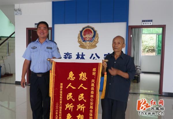 红网凤凰站9月8日讯(通讯员 孙延彬)9月6日上午,湖南省凤凰县落潮井板帕村村民自发组织将一面写着“急人民之所及、想人民之所想”的锦旗送到县林业局森林公安。