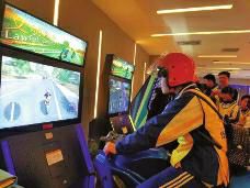 参观完一楼,小记者们来到了二楼儿童情景教育体验区,这里时不时传出小记者们的尖叫声。“哇哦,撞得我脖子疼!”小记者章阳摸着脖子说。原来6名小记者正在汽车碰撞模拟警示区,体验安全带体验装置。“此区域主要向大家介绍安全带的重要性。安全带体验装置采用滑动平台在给定速度下碰撞碰撞体,模拟低速运行车辆发生意外碰撞,切身体验车辆发生碰撞时自身感受及系好安全带的必要性。”工作人员介绍。