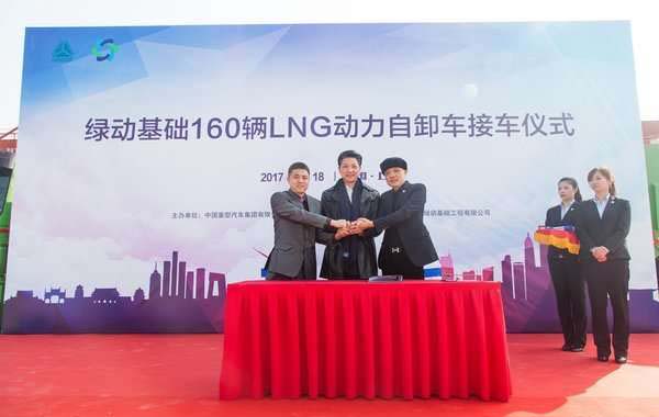 原标题:绿动基础160辆LNG动力自卸车接车仪式在沪成功举办