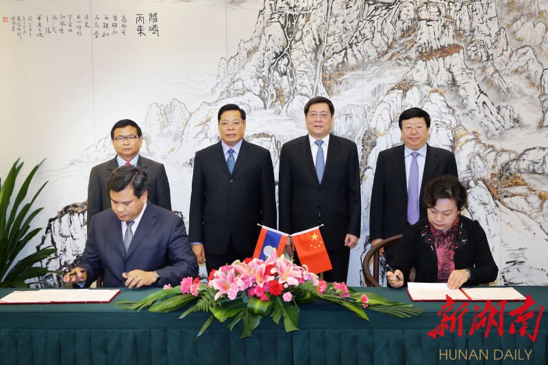 2月20日,我省与老挝人民民主共和国乌多姆赛省在长沙签署建立友好省际关系意向书。省委书记、省人大常委会主任杜家毫会见乌多姆赛省委书记、省长佩沙孔·龙阿派,并共同见证签约。记者 罗新国 摄