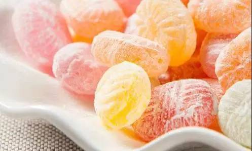 水果糖:只有糖分,其水果味来自香精、色素等添加剂,多吃易导致龋齿。