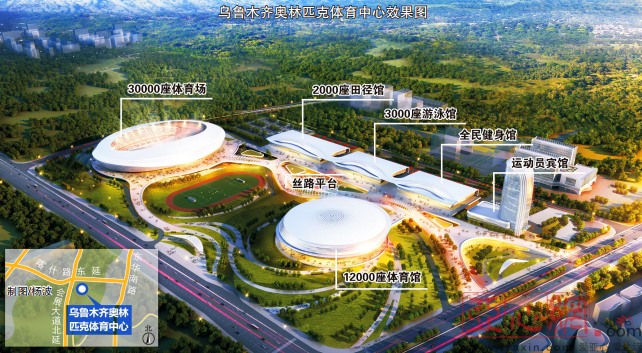 乌鲁木齐奥林匹克体育中心项目位于喀什路东延以南、会展大道二期(北延)以东,计划总投资38亿元,拟建设期为3年。项目占地面积约32万平方米(480亩),总建筑面积超过30万平方米,主要包括综合体育馆、体育场、游泳馆、全民健身中心、综合田径馆、运动员宾馆以及商业建筑等。