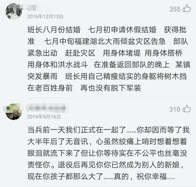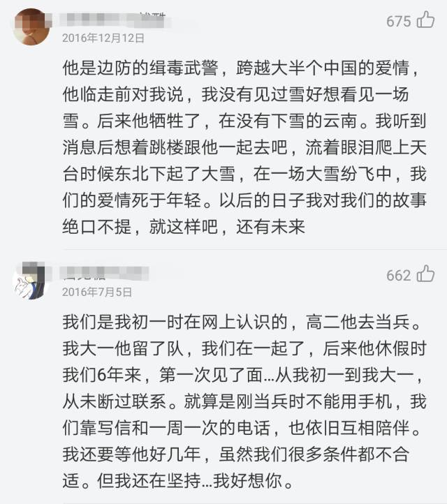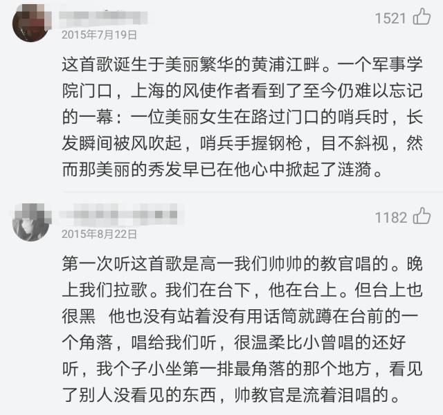 这首歌的评论中多是一个个感人的小故事,既有恋爱的甜蜜,也包含军恋中特殊的心酸。