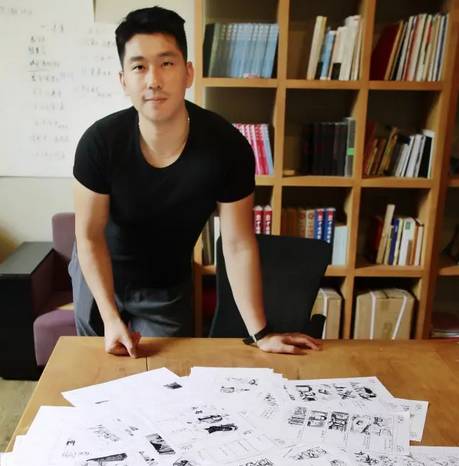 这个画分镜的大神名叫张一鸣,山东烟台人,吴京叫他张老师,而他是个标准的90后阳光大男孩,中国美术学院研究生二年级的学生。