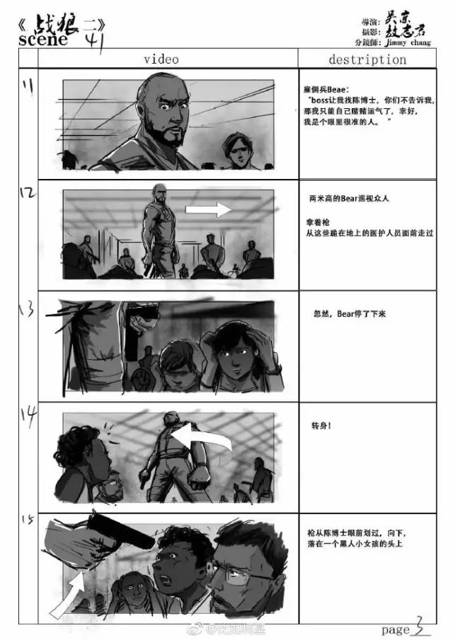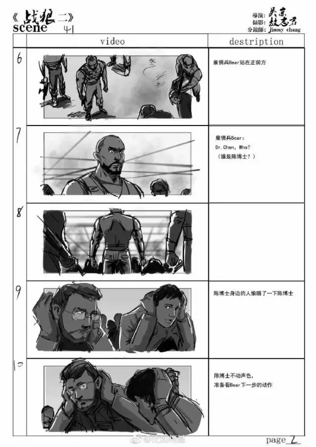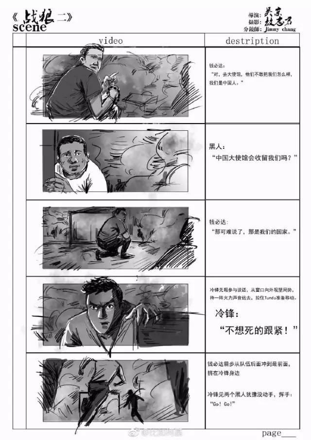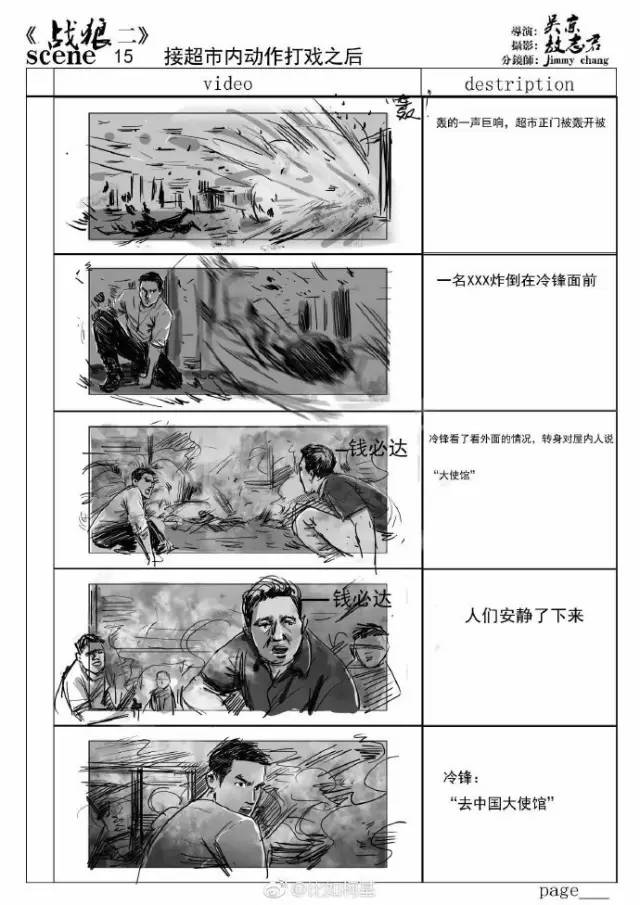 他和另外两位作者,协力完成了《战狼2》整个剧本的故事板分镜。
