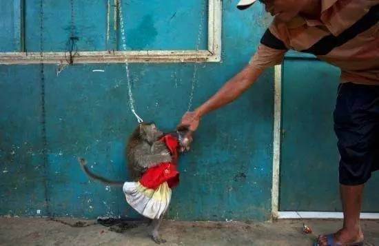 一位游客曾经深入印尼首都雅加达,追踪调查那些街头卖艺的猴子。