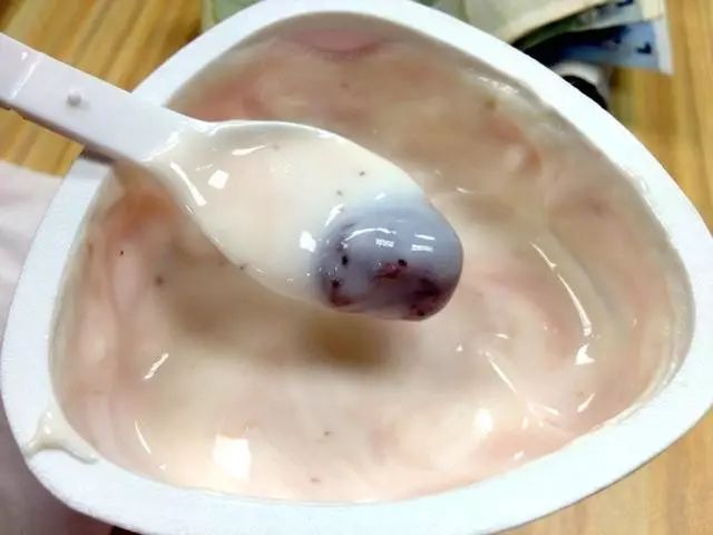 酸奶包装上的塑料薄膜和里面的大果粒,