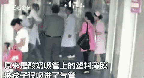 罪魁祸首找到了,原来是酸奶吸管上的塑料薄膜被孩子误吸进气管,同时伴有酸奶中的果粒,造成孩子气管堵塞窒息,好在医务人员反应迅速,措施得当,抢救及时,孩子万幸抢救了过来。