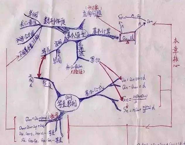开始时,我看到这张毫不整齐的图,觉得摸不着头脑。然而,在经过张老师的细心指导和训练下,我很快地掌握了通过思维导图巩固知识点,更重要的是培养快速解题的思维和方法!这是最令我兴奋的!因为,以往不敢触及的数列题现在已经能有一个清晰的解题思路了!