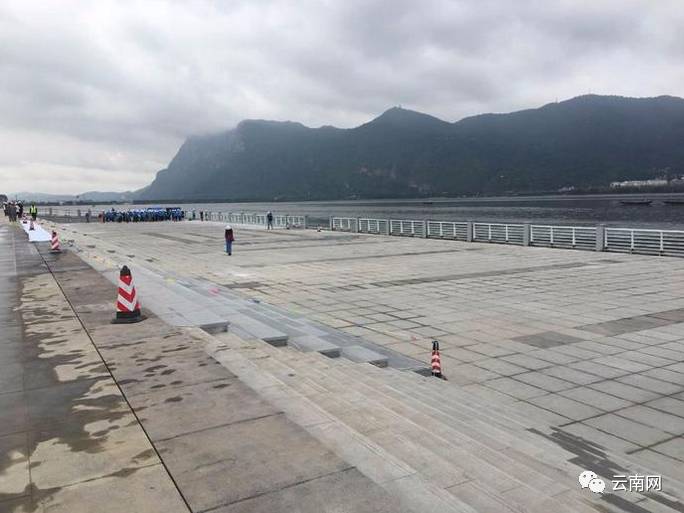 绵延3公里的草海大堤平台,一改往日小块地砖铺设时坑洼不平的景象,换上了灰白色的大块石材地砖,坝体边原先的水泥矮墙和斜坡也不见了。