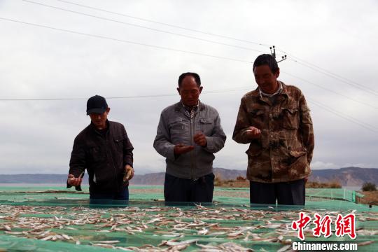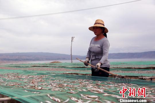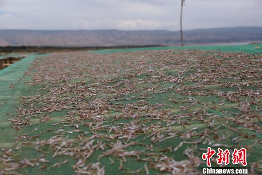 图为青海省海南藏族自治州龙羊峡库区所产的“小银鱼”进入晾晒期。 罗云鹏 摄
