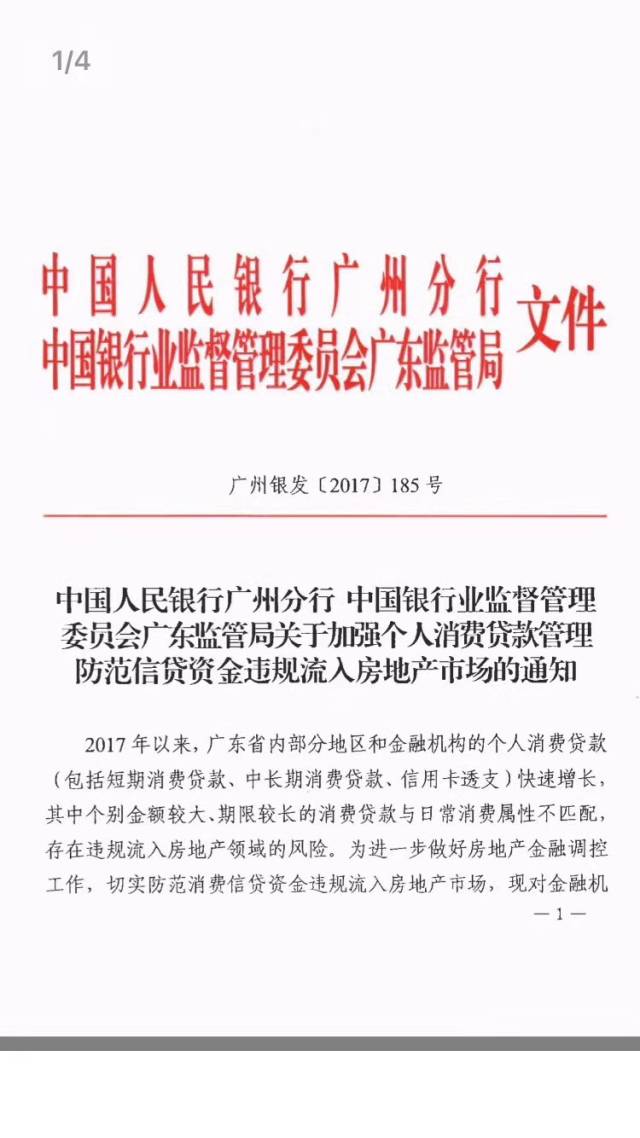 20日凌晨,一份由中国人民银行广州分行、中国银监会广东监管局,联合发布的“关于消费贷管理、防范信贷资金违规流入房地产市场”的通知曝光!