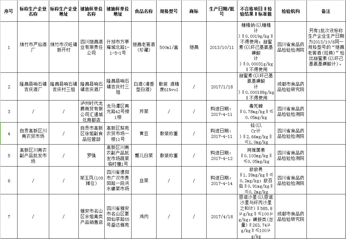 四川曝光9批次不合格食品:散装白酒检出甜蜜素