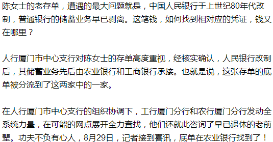 不久前陈女士回到灌口老家,就顺便去寻找该行“灌口营业所”,一番打听,才从当地银行业者处得知,灌口并没有中国人民银行,当年的“中国人民银行”已经改制,并非如今的中国人民银行,当年的一些业务都归并到其他银行。