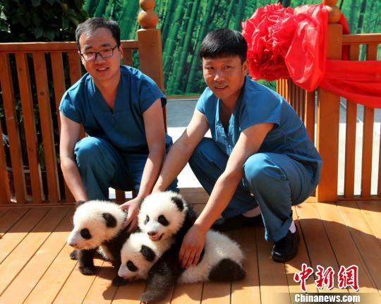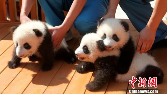 中新网西安9月21日电 (记者 阿琳娜)21日,2017年秦岭大熊猫征(冠)名认养活动启动仪式在陕西省林业科学院秦岭大熊猫繁育研究中心举行,2017年新生的4只大熊猫宝宝集体“亮相”,其中3只新生大熊猫将公开征(冠)名认养。