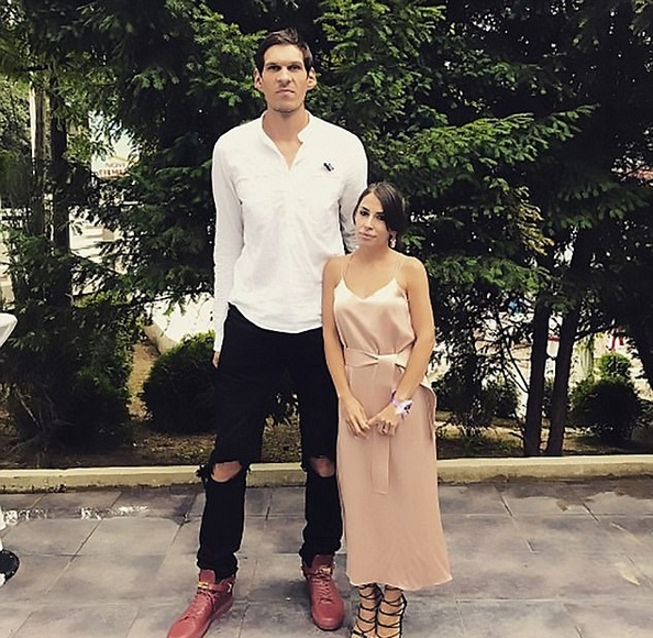 【环球网综合报道】据英国《每日邮报》9月21日报道,近日,网上一则视频显示,美国塞尔维亚籍篮球运动员博班•马扬诺维奇(Boban Marjanovic)和妻子米莉察(Milica)在街上跳舞并接吻,场面甜蜜温馨。其中最让人印象深刻的是,米莉察比她身高7英尺3英寸(2.21米)的丈夫矮2英尺(约61厘米),看起来十分娇小。