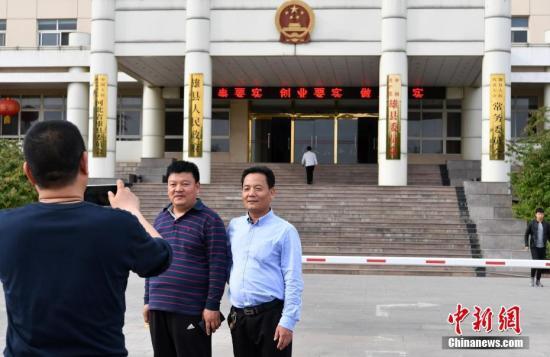 河北雄县人民政府门口,市民拍照留念。资料图。 中新社记者 翟羽佳 摄