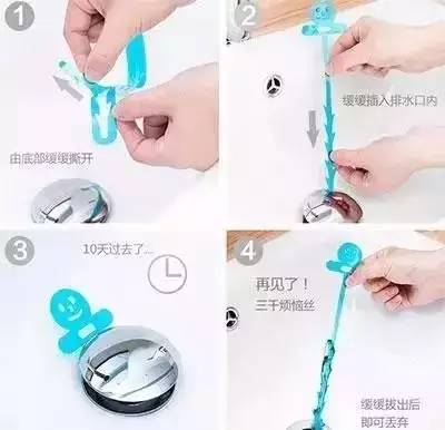 只要把上图的“它”放到排水管道里,一周换一根,就可以有效拦截从下水口掉下去的长头发,防止头发堵塞排水口。