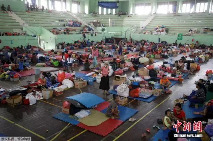 ▲图为当地时间11月28日,印尼巴厘岛,阿贡火山持续喷发,民众转移至体育场避难。