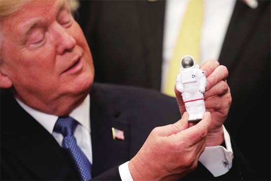 当天,美国第45任总统唐纳德·特朗普在白宫签署命令,指示美国国家航空航天局(NASA)启动太空探索项目,送美国宇航员重返月球,并为登陆火星打下基础。在演讲中,他的兴奋之情溢于言表:“我今天签署的这项指令,会让美国太空项目重新聚焦到人类的探索和发现上。美国宇航员将在1972年后首次重返月球,目的是长期探索和使用(月球资源)。这一次,我们不仅仅会留下国旗和脚印,我们将为最终的火星计划建立基地,甚至帮助我们在未来某一日到达更遥远的世界。”