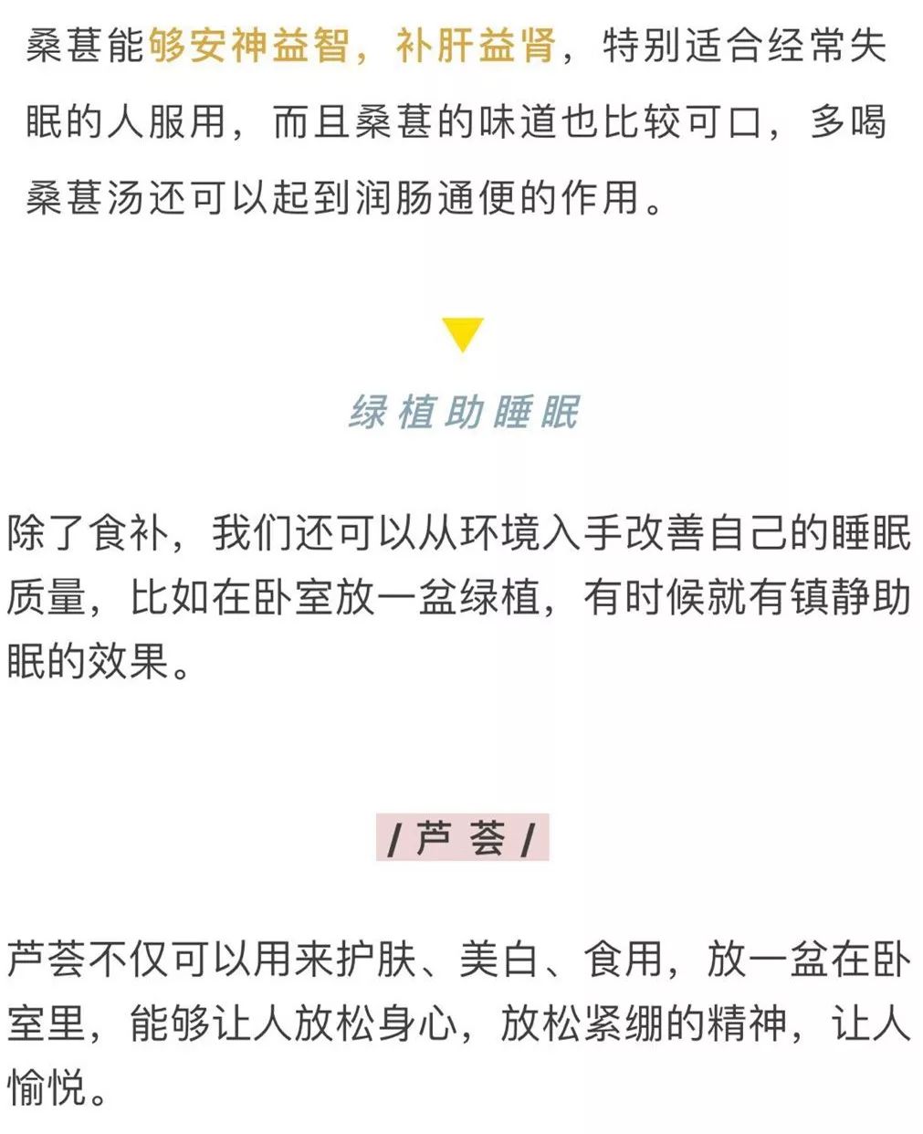 香蕉中含有丰富的钾和镁等矿物质,能够消除疲劳、安抚神经,且香蕉中含有的5―羟色胺物质可以让人精神愉悦。睡前喝一杯香蕉肉桂汤,是一个助眠安神的小秘方。