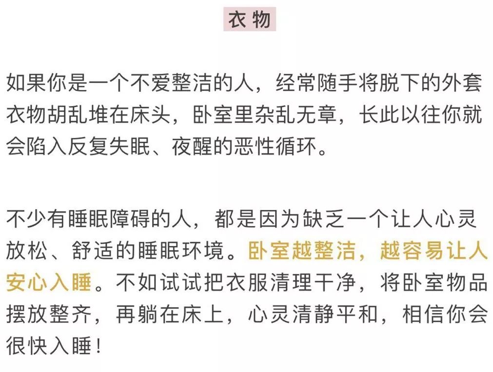 精神科专家建议,想要提高睡眠质量。一定要将带屏幕的电子设备,如手机、平板电脑、电视等物品带出卧室、远离床头。这些物品都会不断刺激的大脑,让你精神处于兴奋状态,因而导致入睡困难、心绪不宁。