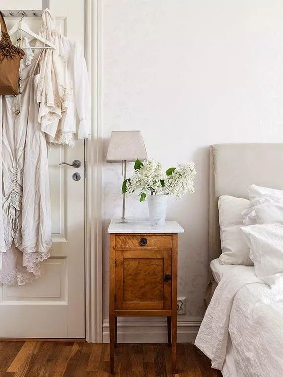 卧室里放一盆,能够给你一个安稳的夜晚,放一个薰衣草香包在这边,也能起到安神的效果。