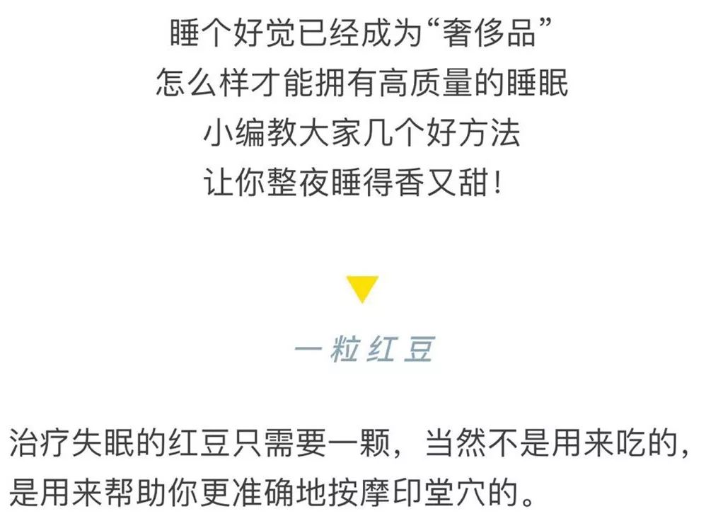 拿一颗红豆放在印堂穴上,用手持续的按揉这个穴位,能够帮助我们更好的进入睡眠的状态。