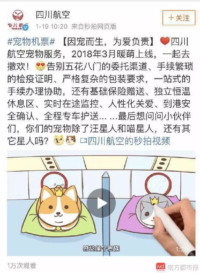 目前“客舱运输宠物”的服务还在试运营阶段,