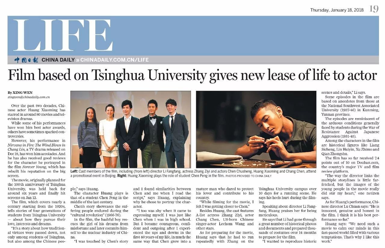 近日在接受《中国日报》采访时,黄晓明表示: