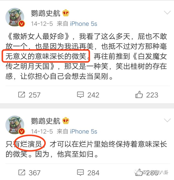 《奇葩说》辩手史航,前几年对黄晓明无意义的意味深长的微笑非常抵触......称其为“烂演员”。