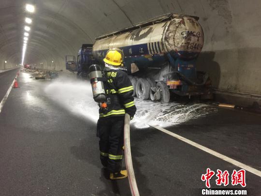 中新网福州1月21日电 (黄绿荣丁友亮)21日上午8时左右,福州市连江县公安消防大队凤城中队接到110指挥中心要求协助处置的命令:宁东高速连江县大帽山隧道福州往宁德方向,一辆大货车与一辆疑似违规改装的水泥罐车发生碰撞,造成大量柴油泄漏,需要消防官兵到场处置险情。
