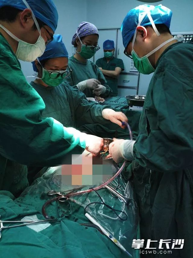 黄河(左一)主刀为李先生开展手术。 长沙晚报通讯员 殷淘 摄