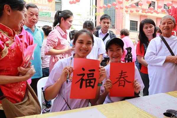 人民网曼谷2月18日电(张志文、许琛)2月16日至17日是春节最热闹的时刻,泰国“欢乐春节”文化活动此时也在曼谷唐人街——耀华力路隆重举行。泰国海上丝路孔子学院受邀参与此次活动,为游客提供中华传统文化体验项目。