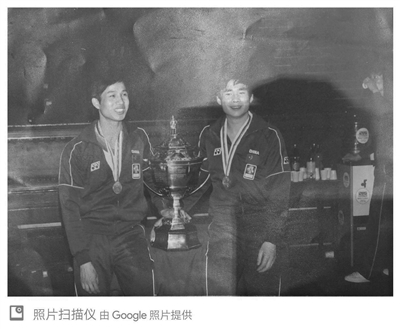 1982年5月21日,孙志安和搭档姚喜明在伦敦与汤姆斯杯合影。