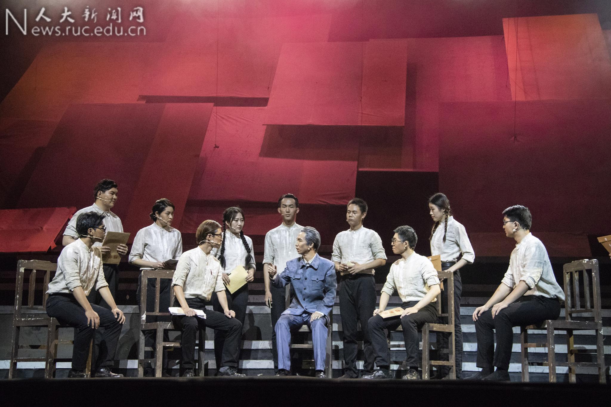 9月18日晚,中国人民大学八十周年校庆原创话剧《吴玉章》2018级新生专场在明德堂举办。