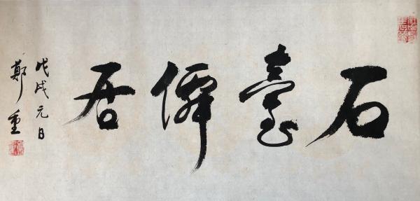 郑老展览开幕式那天正赶上我去日本,很遗憾没能参加。郑重挥毫