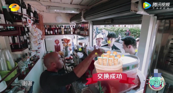 零启动资金的情景设置,比较极端,你异国他乡开餐馆,钱都没有,怎么采购?节目组的意图或许是,让嘉宾们利用现有食材做出美食积累资金,但黄晓明想出(抑或节目组引导)了“以物换物”。就是一群明星拿着从中国带去的各种土特产以及非物质文化遗产,到小岛上的店铺和酒店里置换他们想要的东西。
