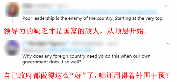 美国网友也不禁感叹,面对乱局,领导力的缺乏才是国家真正的“敌人”。“自己政府都做得这么‘好’了,哪还用得着外国干预呢?”他们无奈地说。