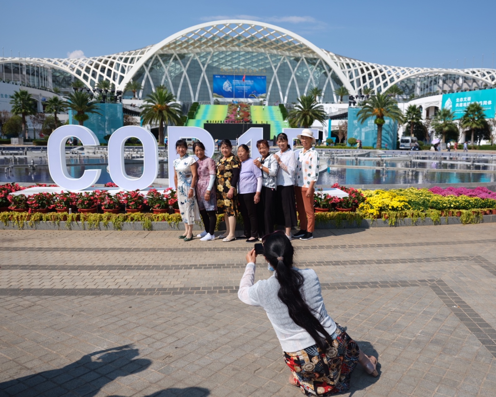 央广网昆明10月3日消息(记者杨菡)COP15第一阶段会议即将到来,市民利用国庆假期纷纷来到滇池国际会展中心打卡参观。在滇池国际会展中心,记者看到,前来拍照打卡的市民络绎不绝,还有不少省外游客。有的游客表示,要把整个昆明的立体花坛全部合影打卡。一对新婚夫妻正抓紧时间和立体花坛合影。记者还看到,工作人员正在为升旗做测试准备。