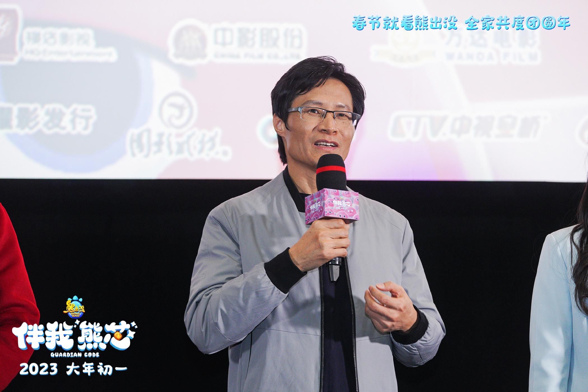 《熊出没·伴我“熊芯”》导演林永长在影片发布会上与观众互动。