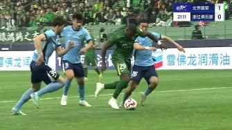 下半场补时9分钟。最终全场比赛结束,国安2-0浙江。