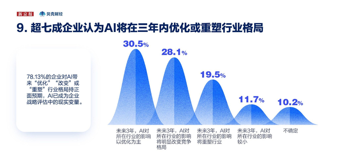 3. 超七成企业认为AI在三年内优化或重塑行业格局