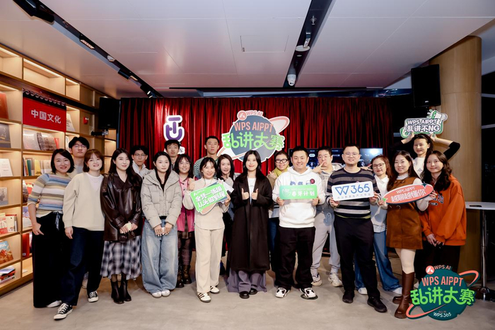近日,金山办公与清华大学脱口秀社团“无问嘻东”联合主办的首届“WPS AIPPT乱讲大赛”在PAGEONE CAFE举行。知名喜剧演员孟阳、浩楠、张丹槟空降活动现场,与来自清华大学、北京大学的脱口秀社团成员一起带来精彩表演。