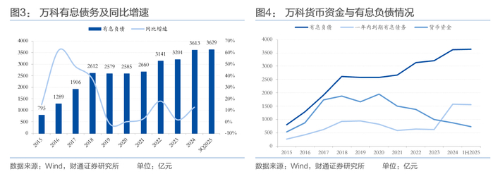 财通证券固收分析师孙彬彬认为,万科的债务整体压力大、债务结构差,且短期偿债压力也很大。截至2025年9月底,万科有息债务为3629亿元,已是历史最高值;债务结构上,据万科半年报披露,一年内有息债务占比42.7%,现金短债比仅0.48。如果剔除货币资金中受限制部分,债务压力会更大。