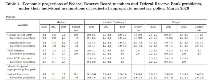 北京时间周四(19日)凌晨,美联储公布3月利率决议。联邦公开市场委员会(FOMC)以11-1的方式决定维持利率区间在3.50%-3.75%不变,反对票来源于美联储理事米兰,他提出降息25个基点。